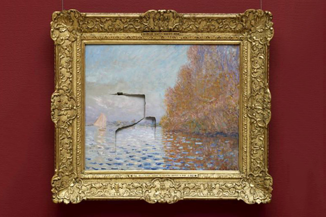 Man slaat gat in Monet schilderij