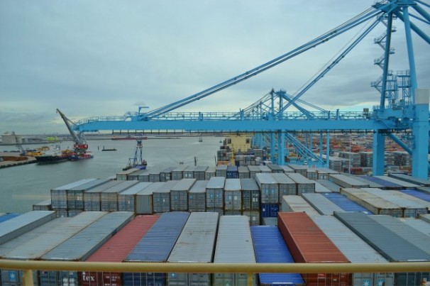 Afgelopen weekend lag het grootste containerschip ter wereld (waar er op dit moment overigens vier van zijn, de vijfde is in aantocht) in de haven van Rotterdam. De Maersk Mc-Kinney Moller is zo groot dat het havenbedrijf zijn terminal aan moest passen met speciale extra grote kranen.